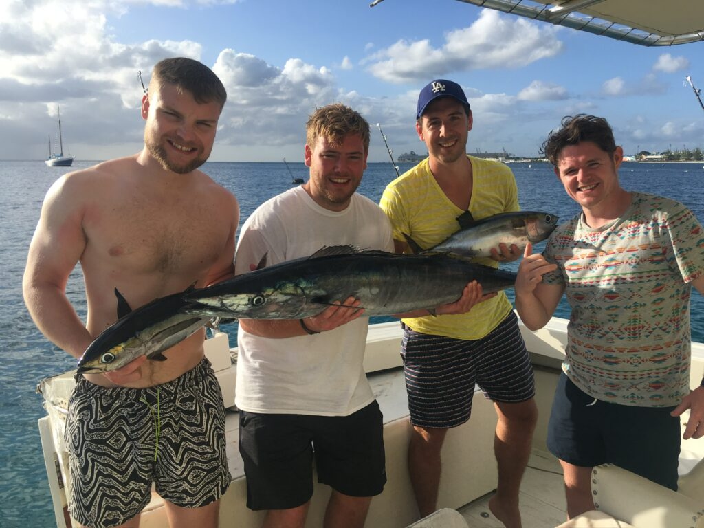 This relaxed afternoon trip combines light fishing with time to swim in the warm Caribbean waters, topped off with a fresh-caught, on-board BBQ. We’ll start with some trolling for seasonal favorites like Lahoo, Mahi, Barracuda, or Tuna, then anchor in a calm, scenic spot for swimming and snorkeling. While you unwind, we’ll fire up the grill and prepare part of the day’s catch right on board. Nothing beats the taste of fish cooked straight from the sea! To cap off the experience, we’ll pop open a bottle of bubbly to celebrate your catch. It’s a fun and flavourful way to experience Barbados by sea.